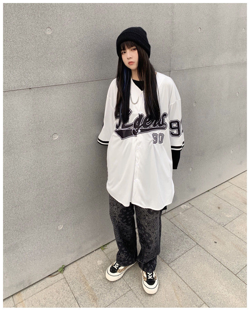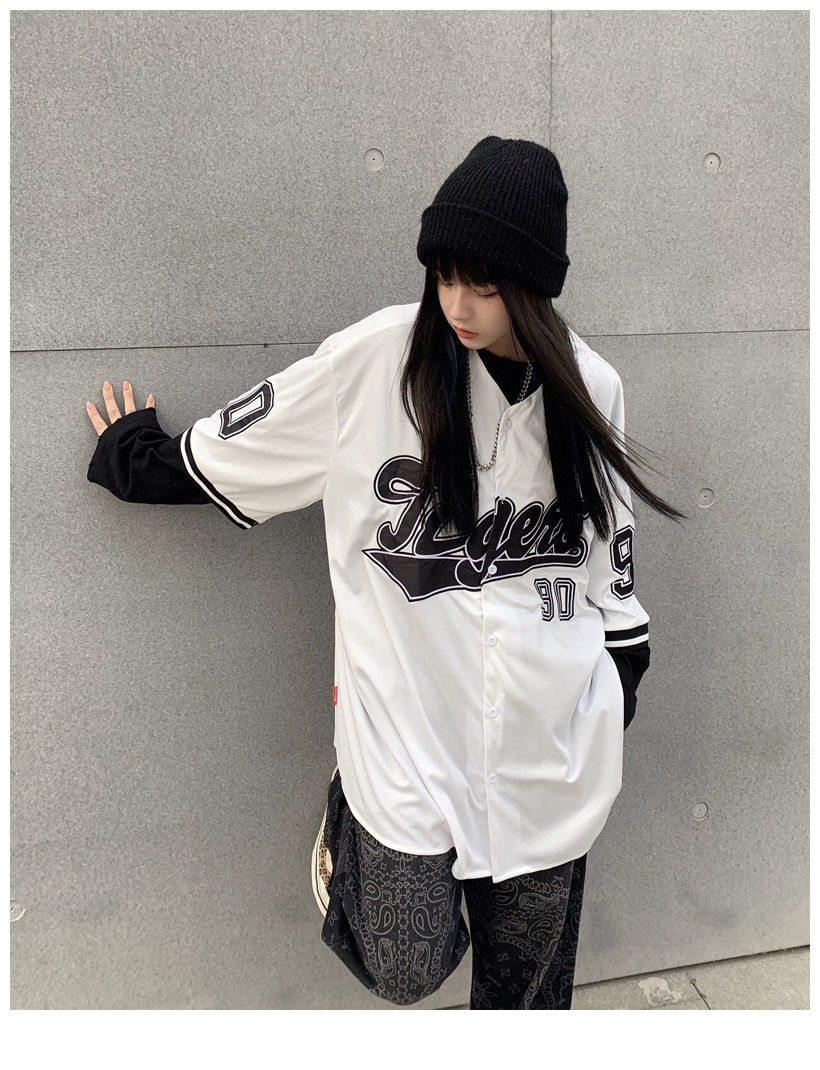 ユニフォーム風シャツ半袖五分袖ブラウス