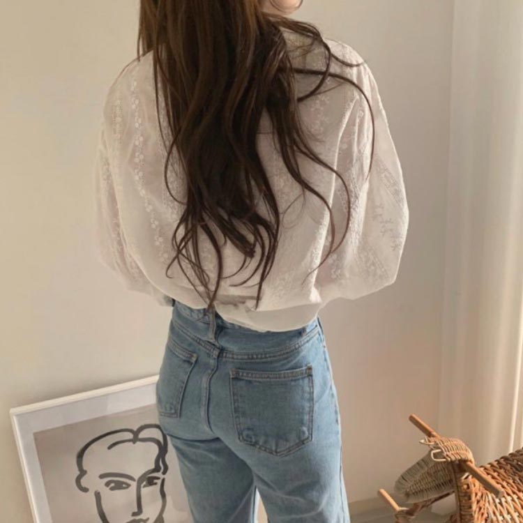 ブラウス ふんわり袖 刺繍ブラウス レ