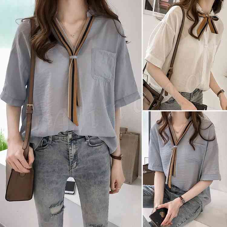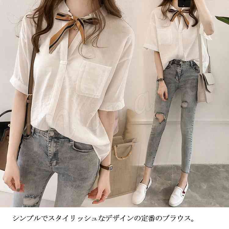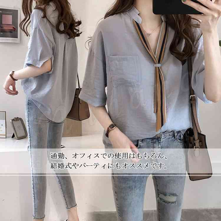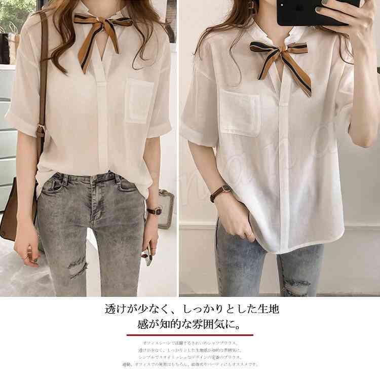 シアースリーブ ドッキングシャツ ボウタイシャツブラウス