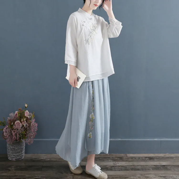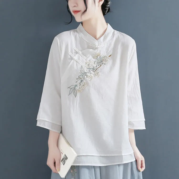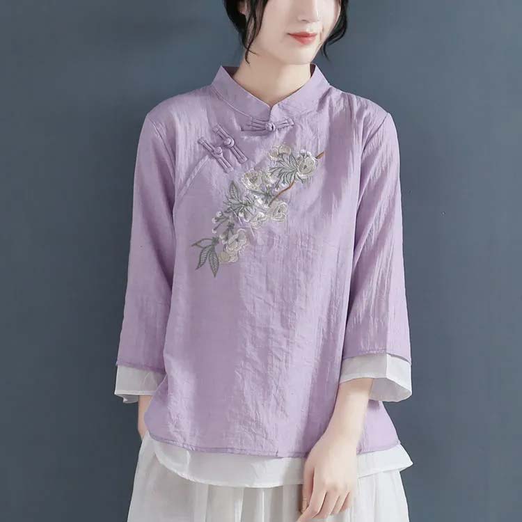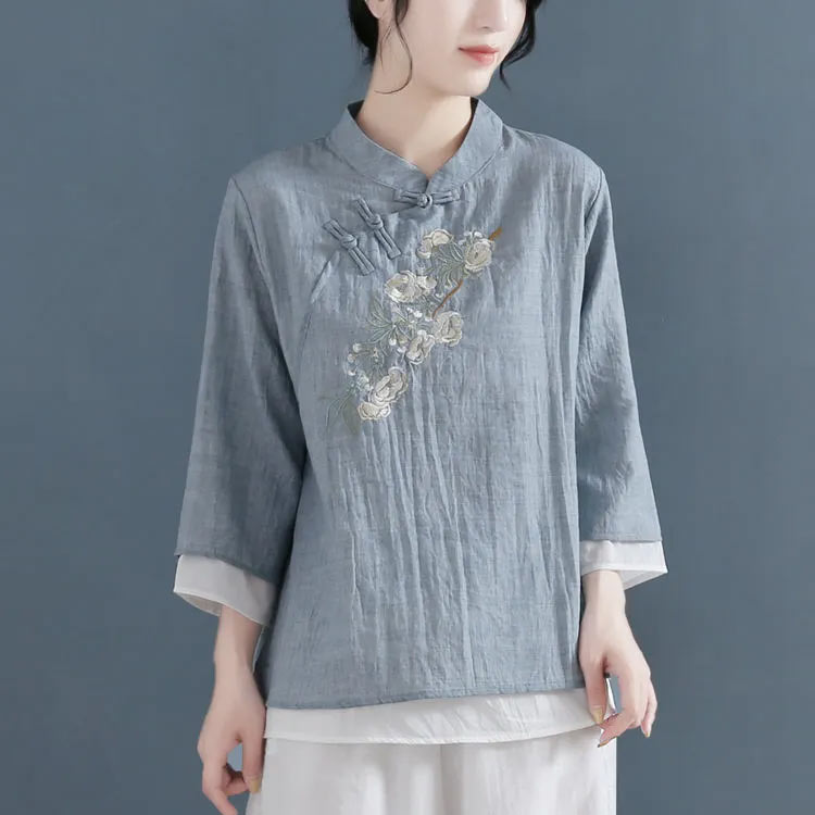 綿麻 レディース レトロ リネンブラウ