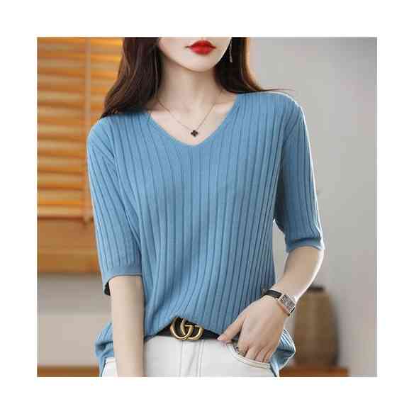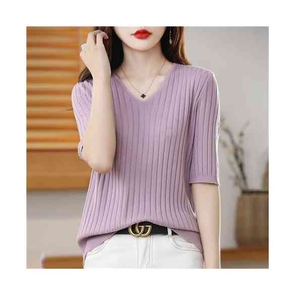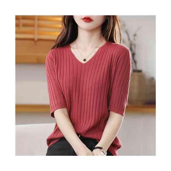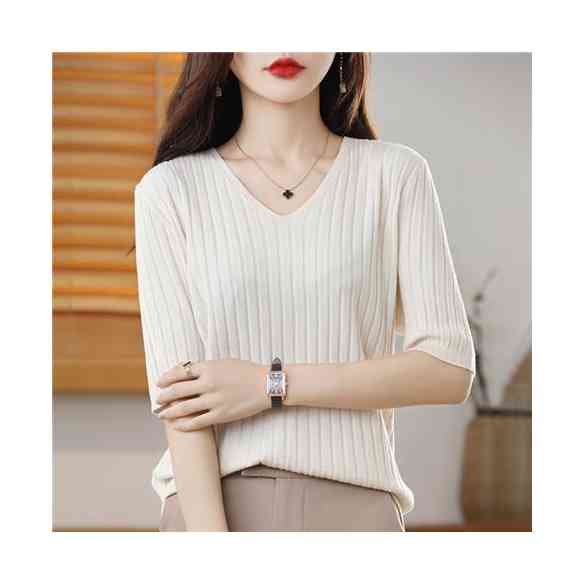 インナーブラウス 無地 Vネック 七分