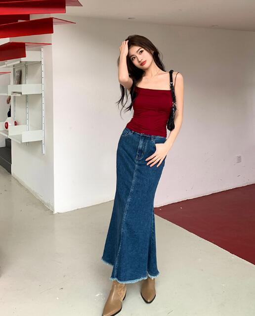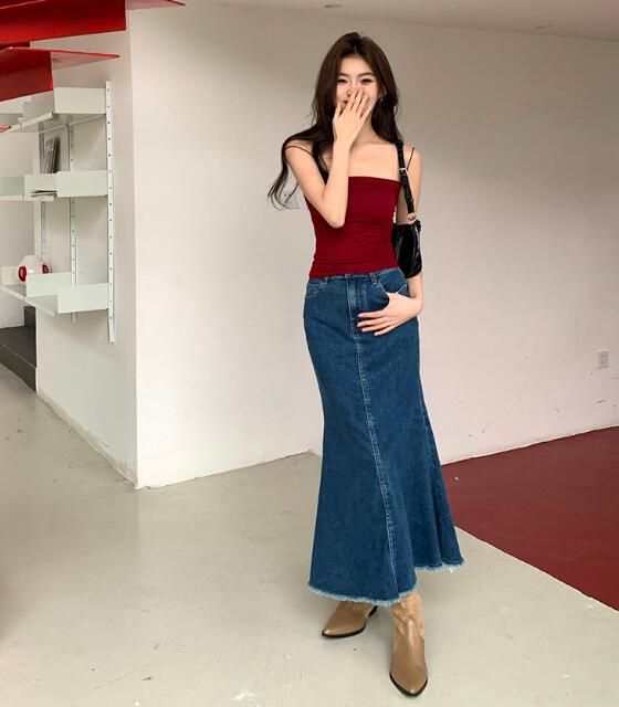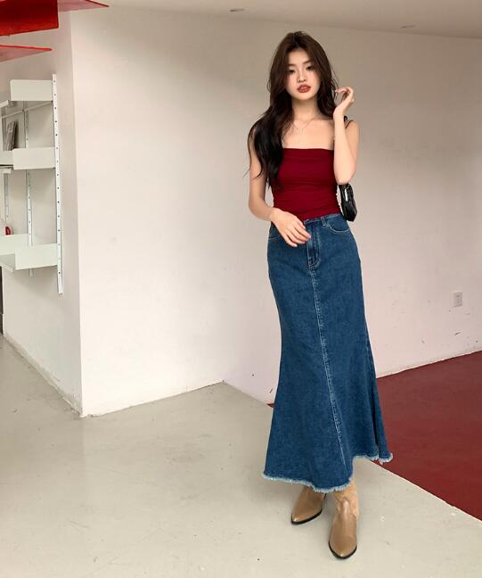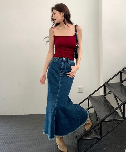 デニムスカートロングタイトAラインレデ