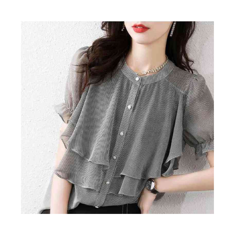 シアースリーブ ドッキングシャツ ボウタイシャツブラウス