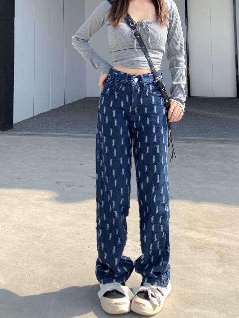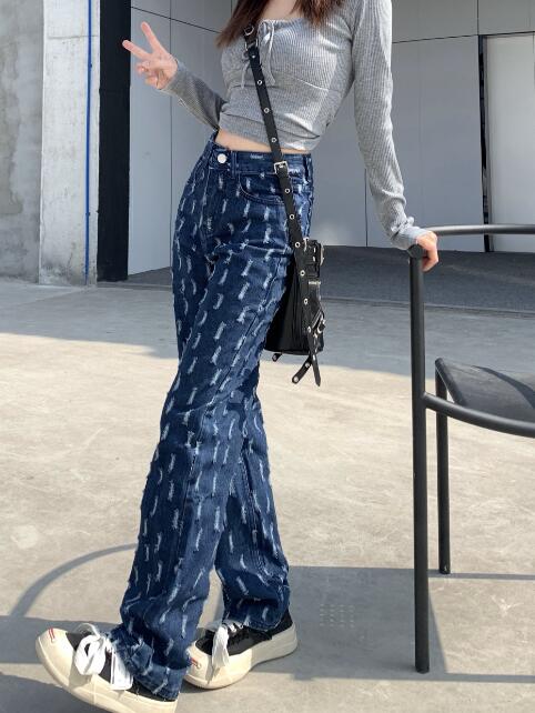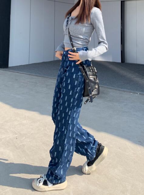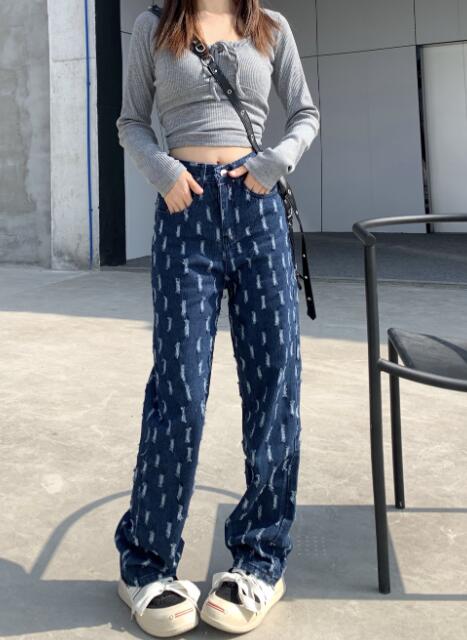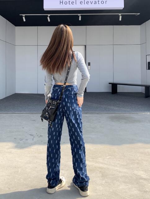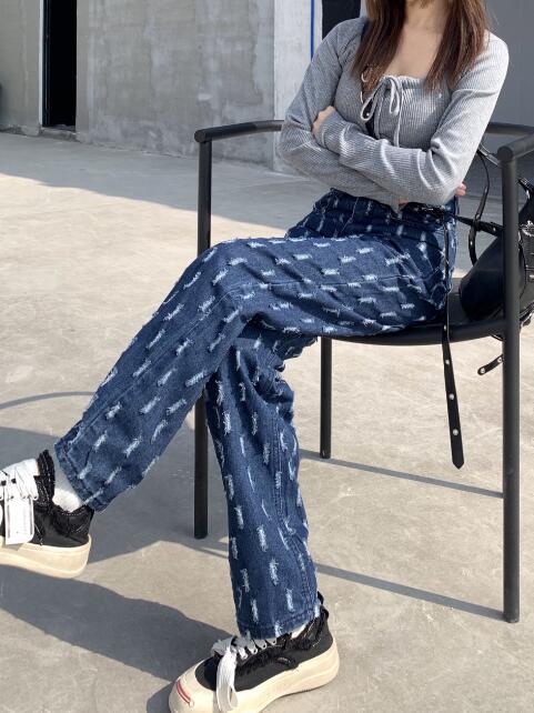 デニムパンツ ビジュー付き