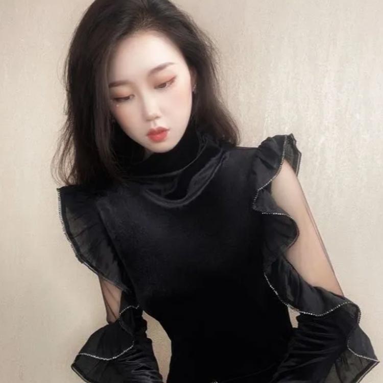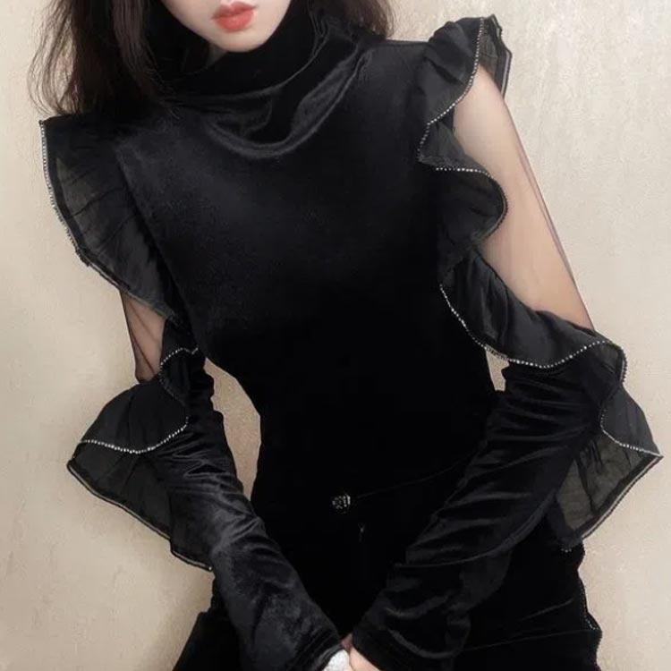 カットソー レディース ベルベット 長
