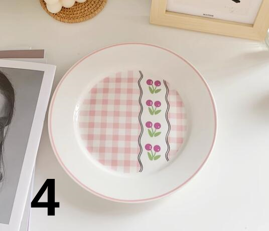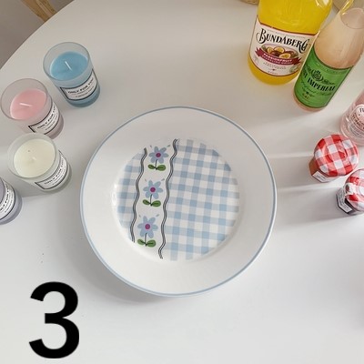 「1/3/5各1枚ずつ即納あり」2点セット お皿 食器 セット 花柄 レトロ 北欧 おしゃれ 可愛い かわいい カフェ デザイン プリント 雑貨 安い イラスト お揃い プレート 韓国 雑貨 フラワー チェック