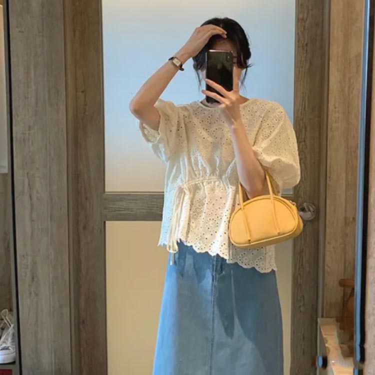 シアースリーブ ドッキングシャツ ボウタイシャツブラウス