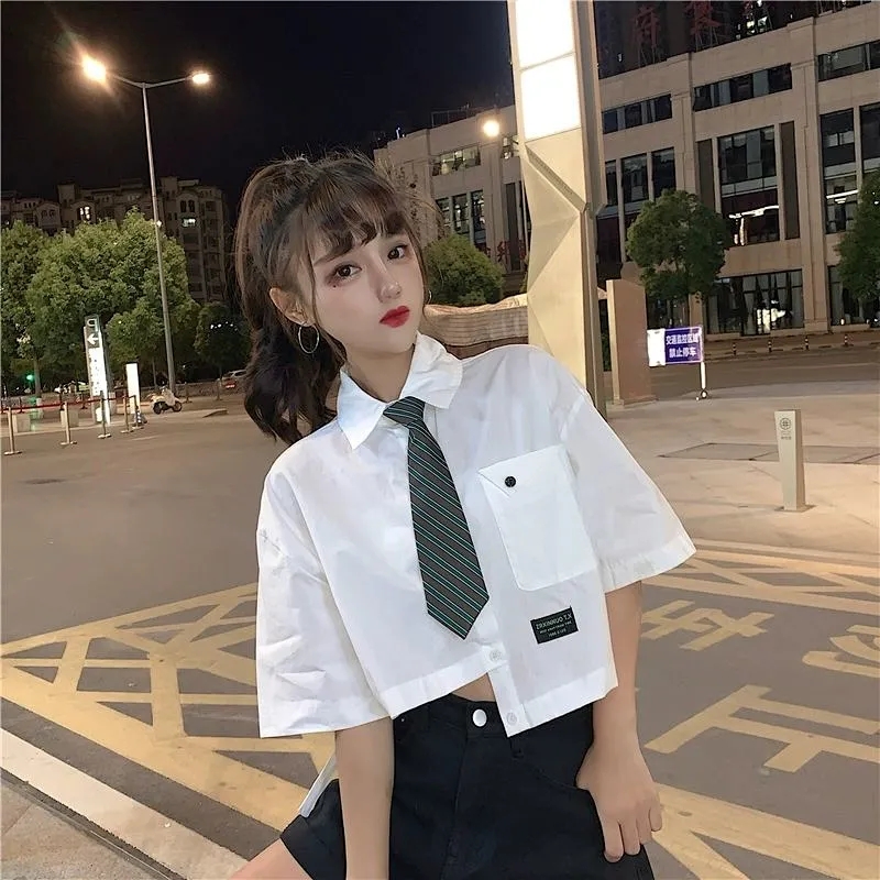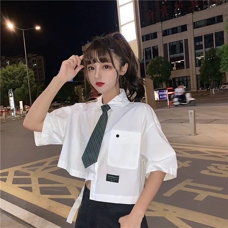 シアースリーブ ドッキングシャツ ボウタイシャツブラウス