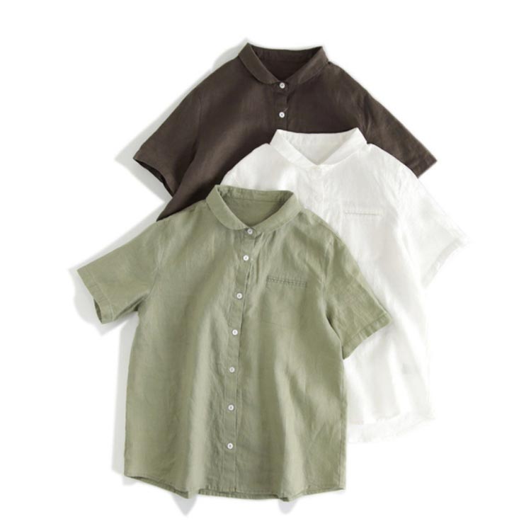シャツ レディース 綿麻シャツ 半袖