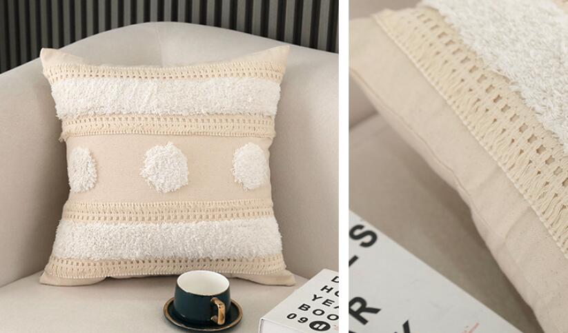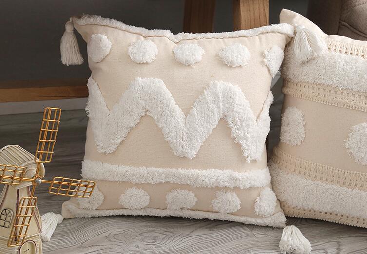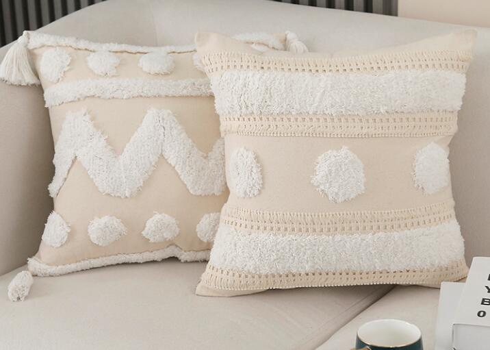 モチーフクッションカバー2デザイン45cm×45cm北欧おしゃれ可愛い洗える四角正方形韓国雑貨インテリアもこもこボンボン 幾何高級感