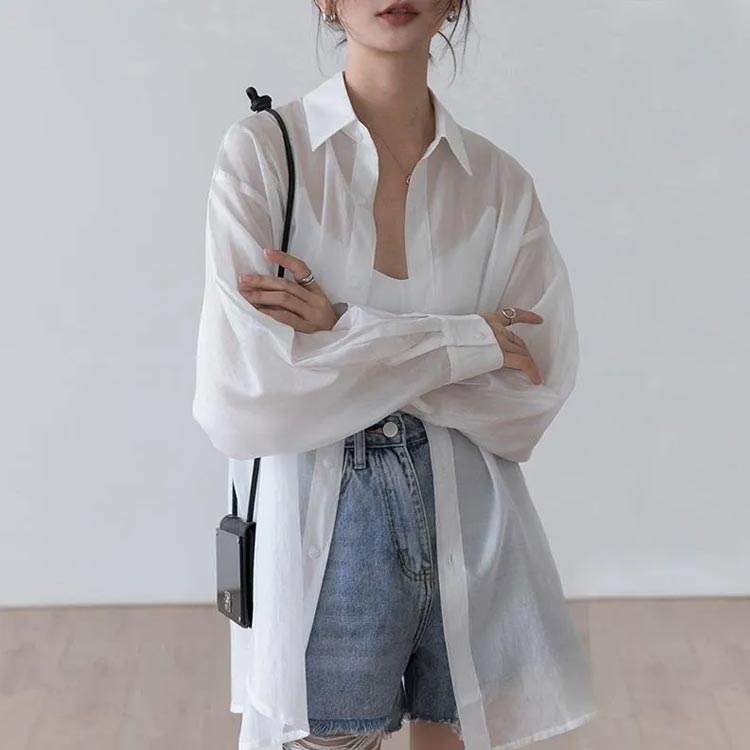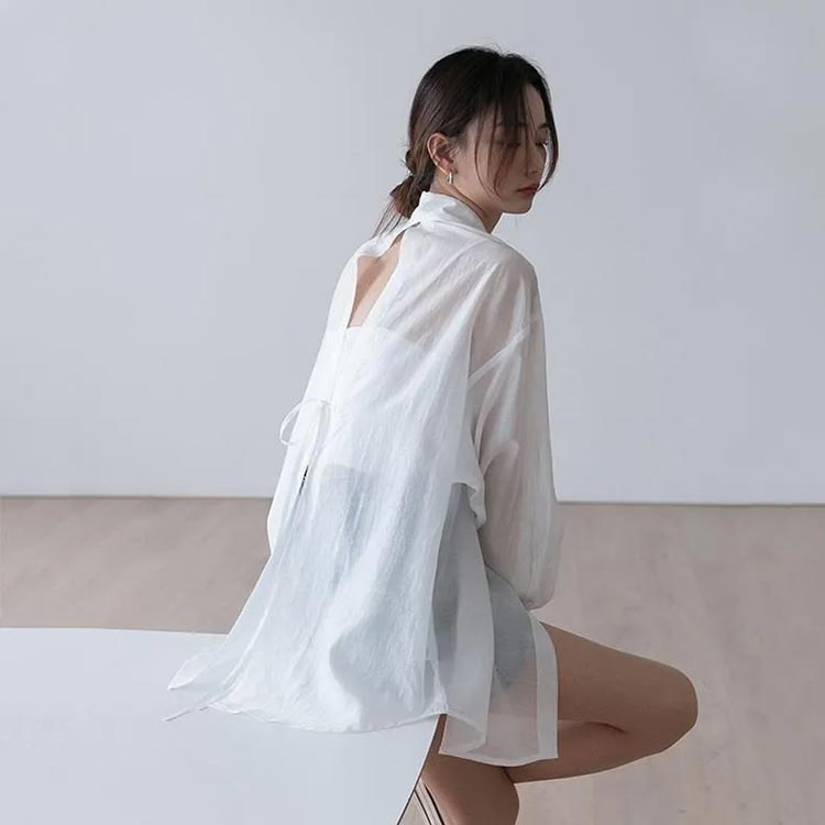 シアーシャツ 長袖 レディース バック