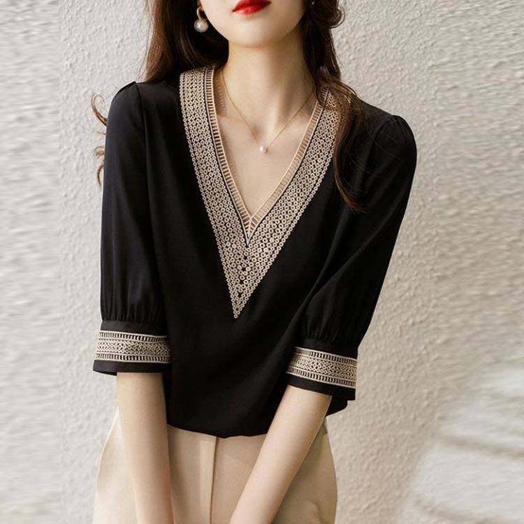 シアースリーブ ドッキングシャツ ボウタイシャツブラウス