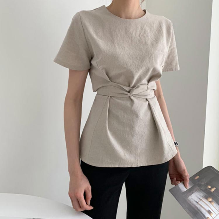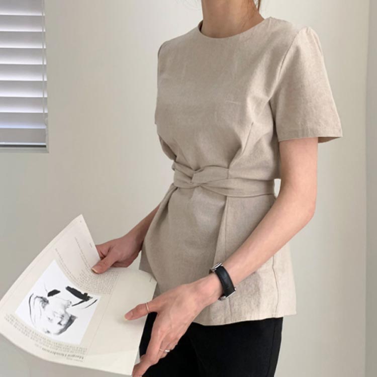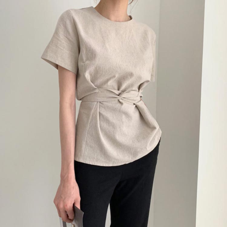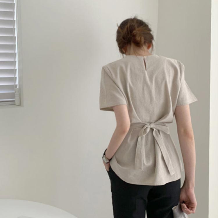 シアースリーブ ドッキングシャツ ボウタイシャツブラウス
