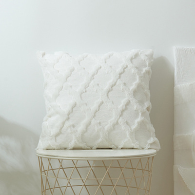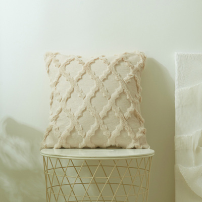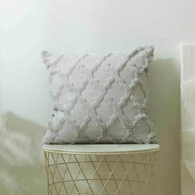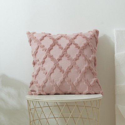 アーガイルクッションカバー4色カバーチェック白ホワイトベージュピンクグレーフラワーもこもこ大きい45cm×45cm北欧おしゃれ可愛い洗える四角正方形韓国雑貨インテリア北欧ふわふわフリンジ刺繍クッション