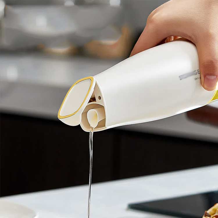 片手で本体を傾けるだけで注ぎ口が自動開