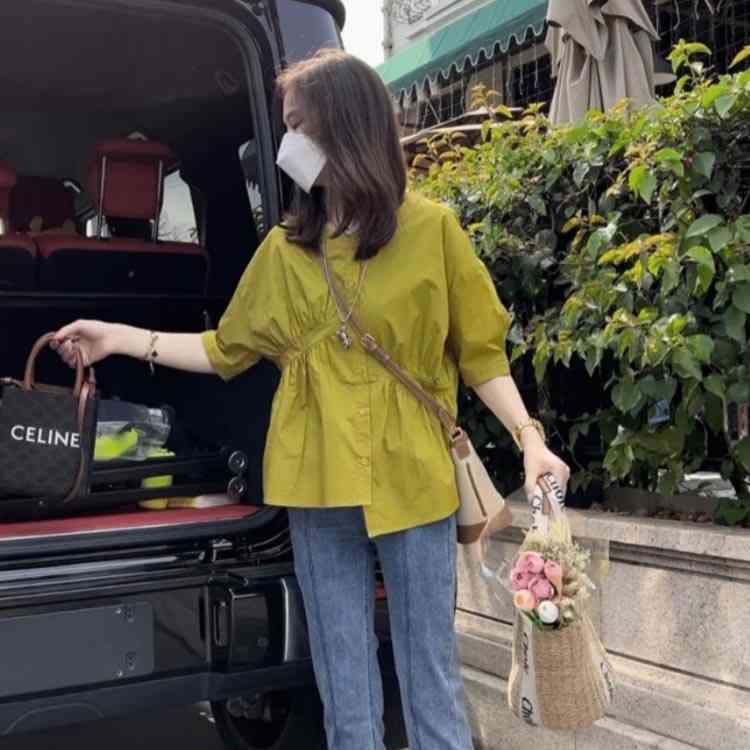 シアースリーブ ドッキングシャツ ボウタイシャツブラウス