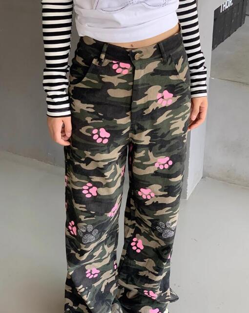 デニムパンツ ビジュー付き