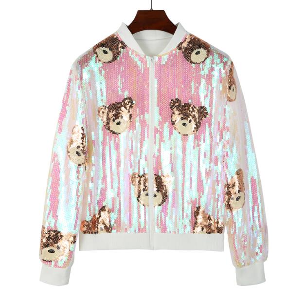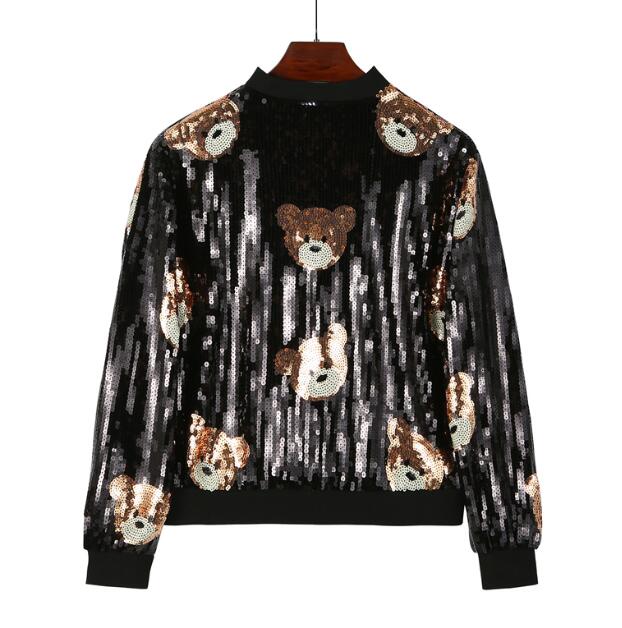 スパンコールくまベア長袖スカジャンブル