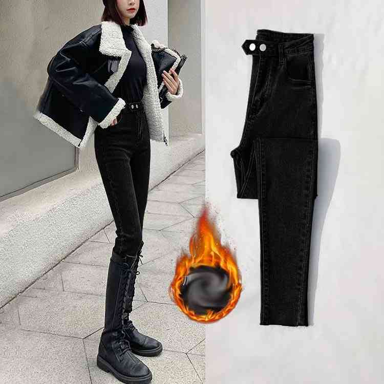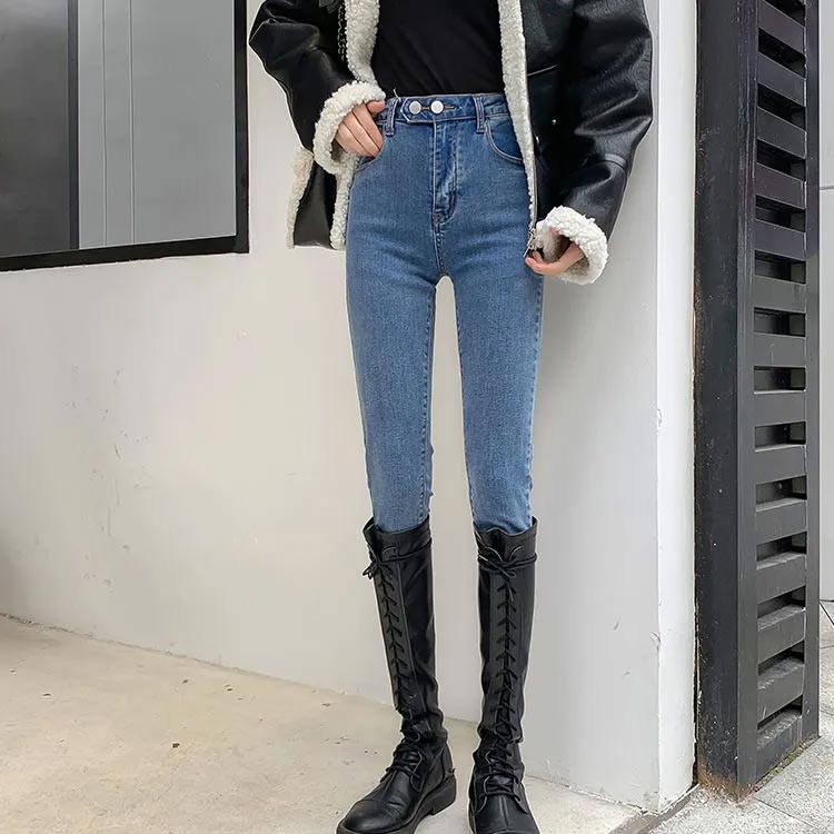 スキニーデニムパンツ 裏起毛素材 裏起