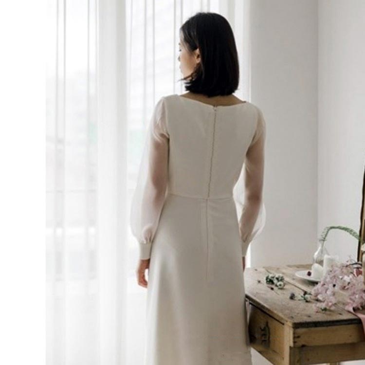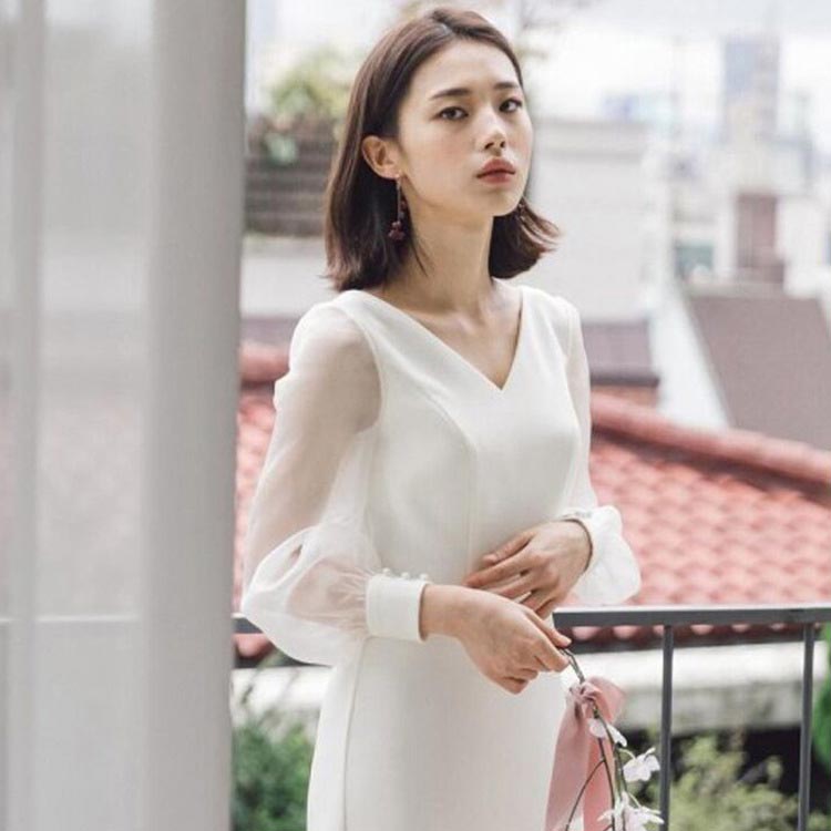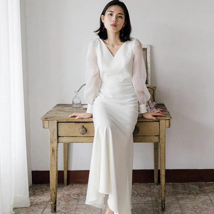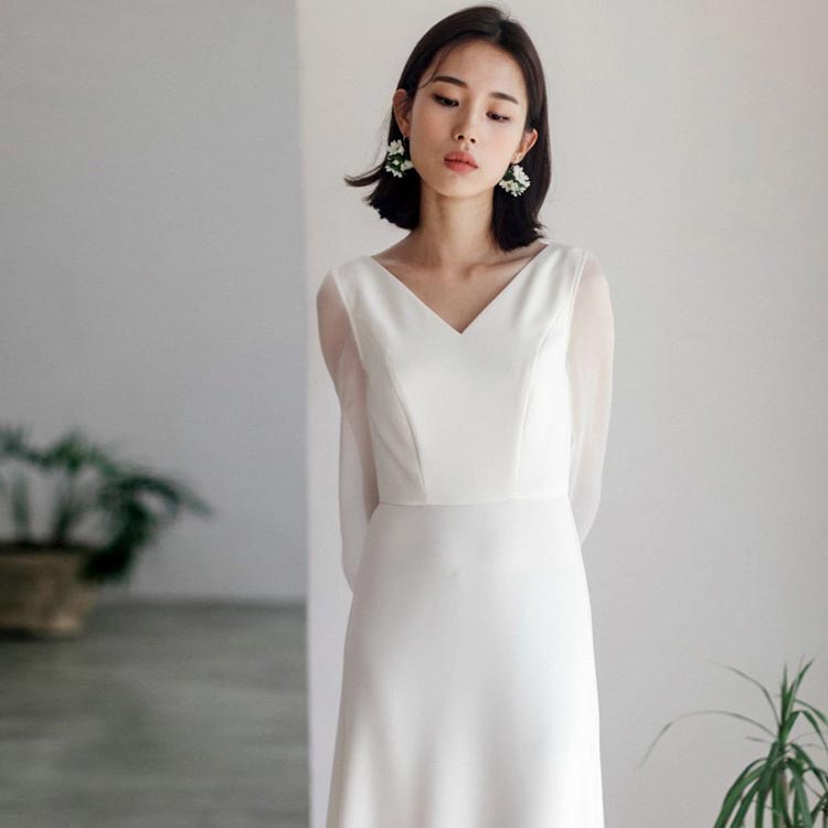 Vネック ウェディングドレス 無地 シ