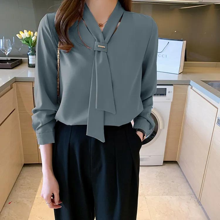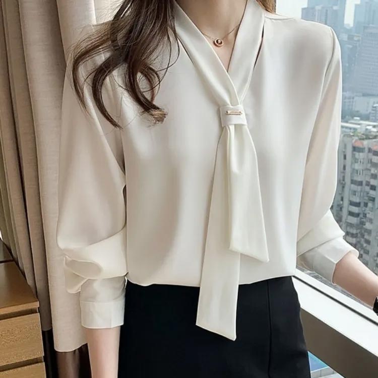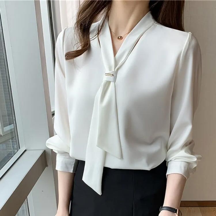 シアースリーブ ドッキングシャツ ボウタイシャツブラウス