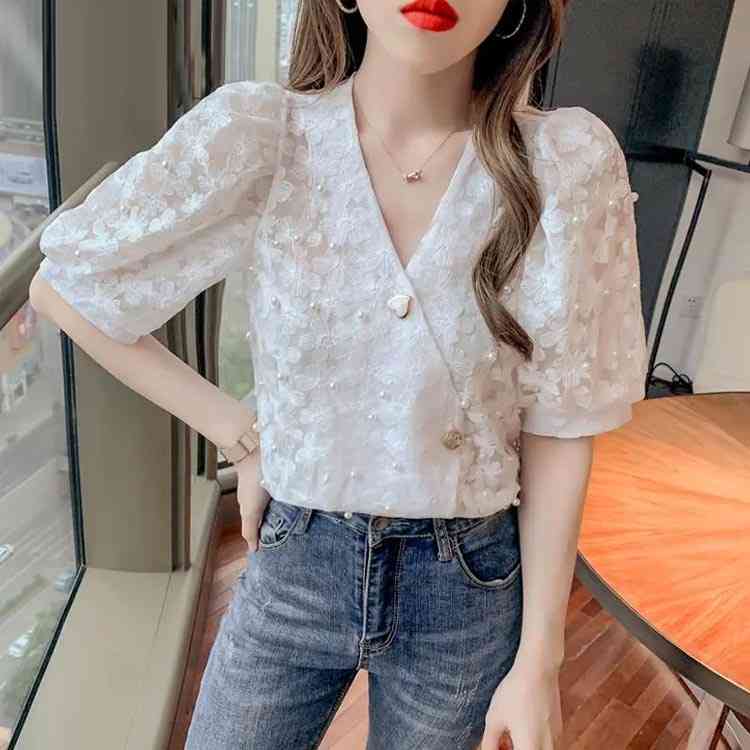 ブラウス 夏 半袖 トップス シャツ