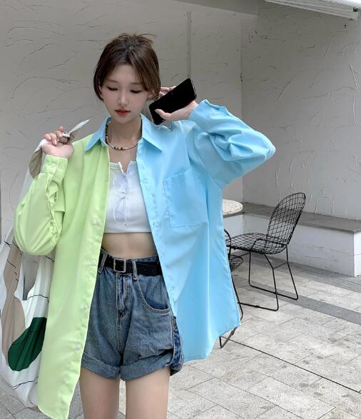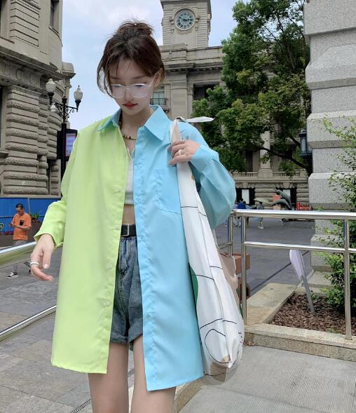 ブラウス シャツ ドルマンスリーブ プリント 切り替え バイカラー 配色 幾何学 エスニック 民族風 体型カバー 原宿系ファッション 韓国 ダンス 衣装 トップス レディース メンズ ヒップホップ H