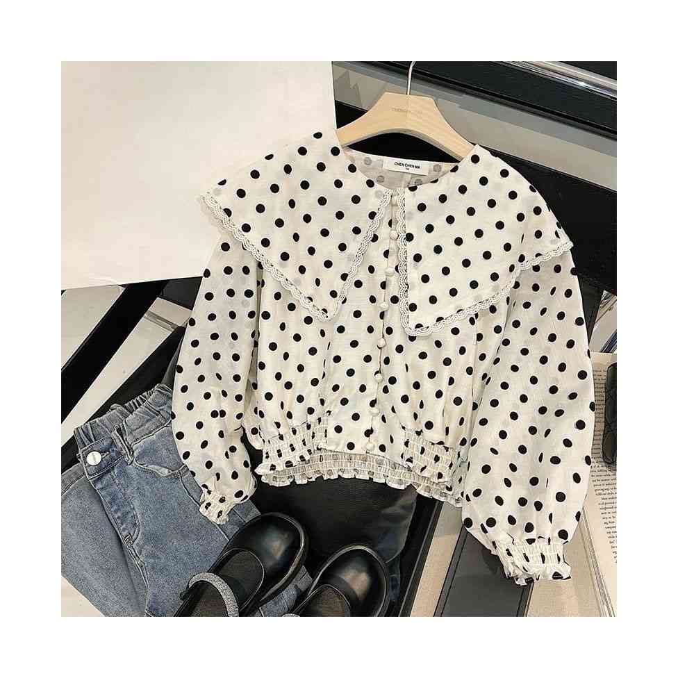 ドット柄ブラウス ドット柄 折襟ブラウ