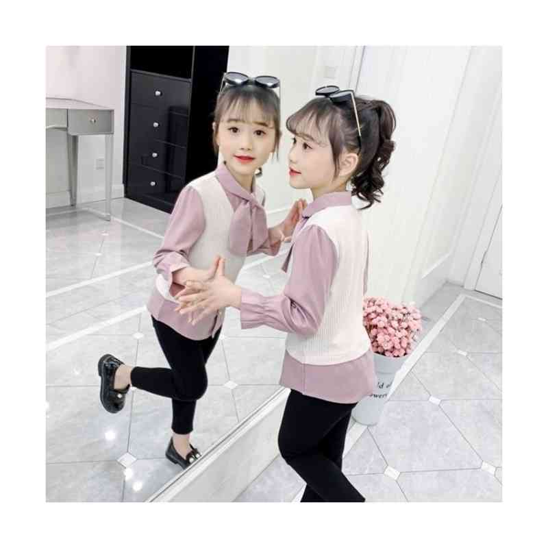 女の子 ゆったり リボンブラウス 無地