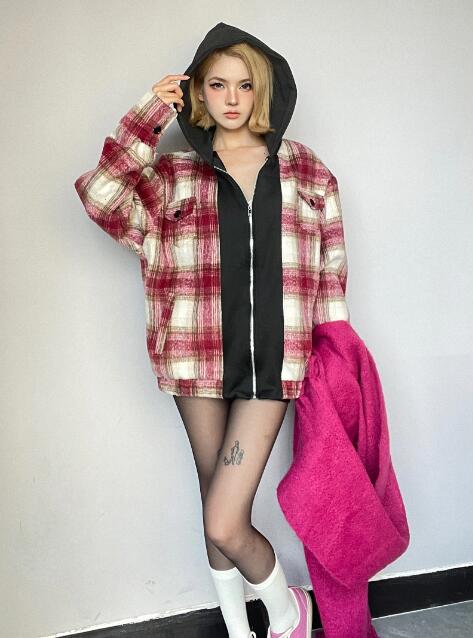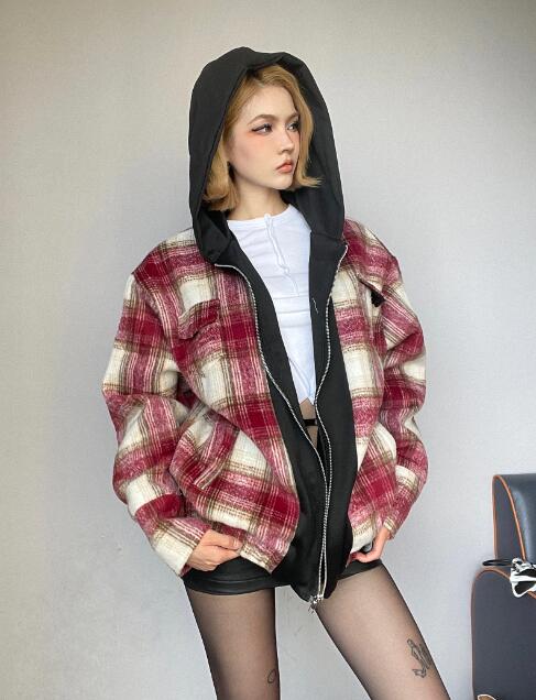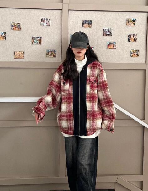 レトロチェック柄コートブルゾンアウター