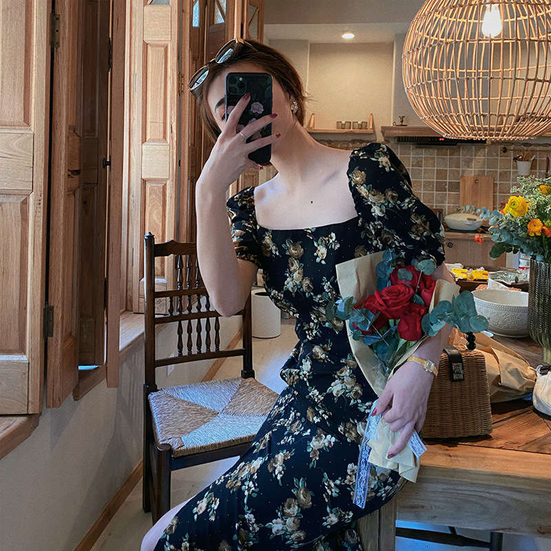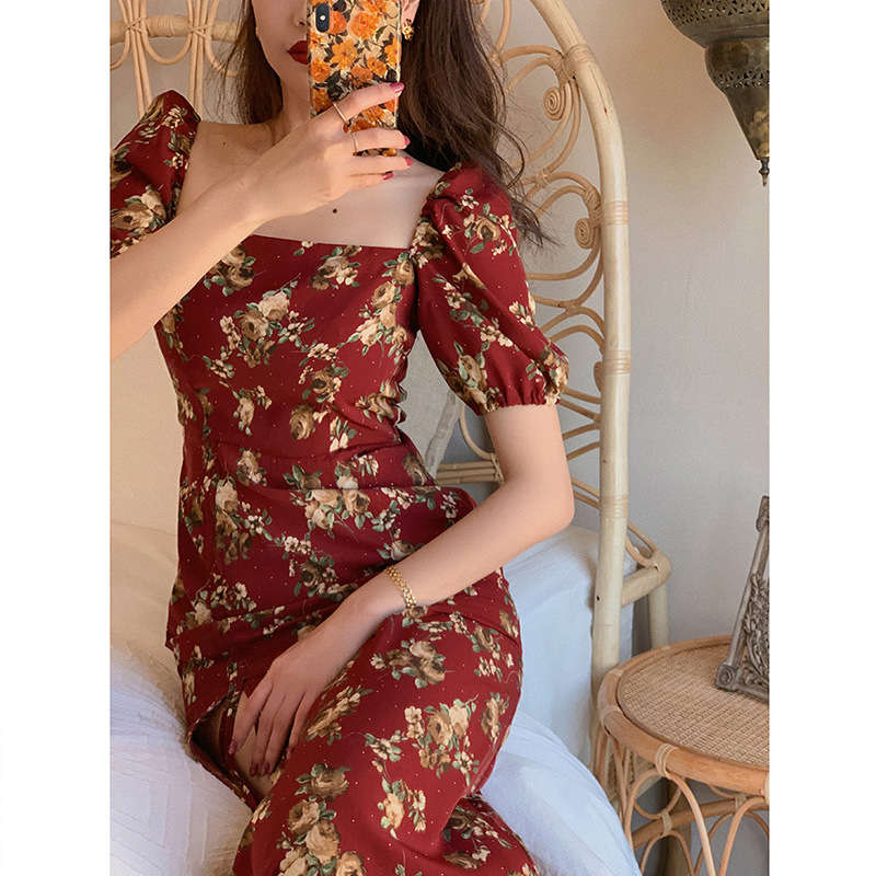 スクエアネック タイトワンピ 半袖 ワ