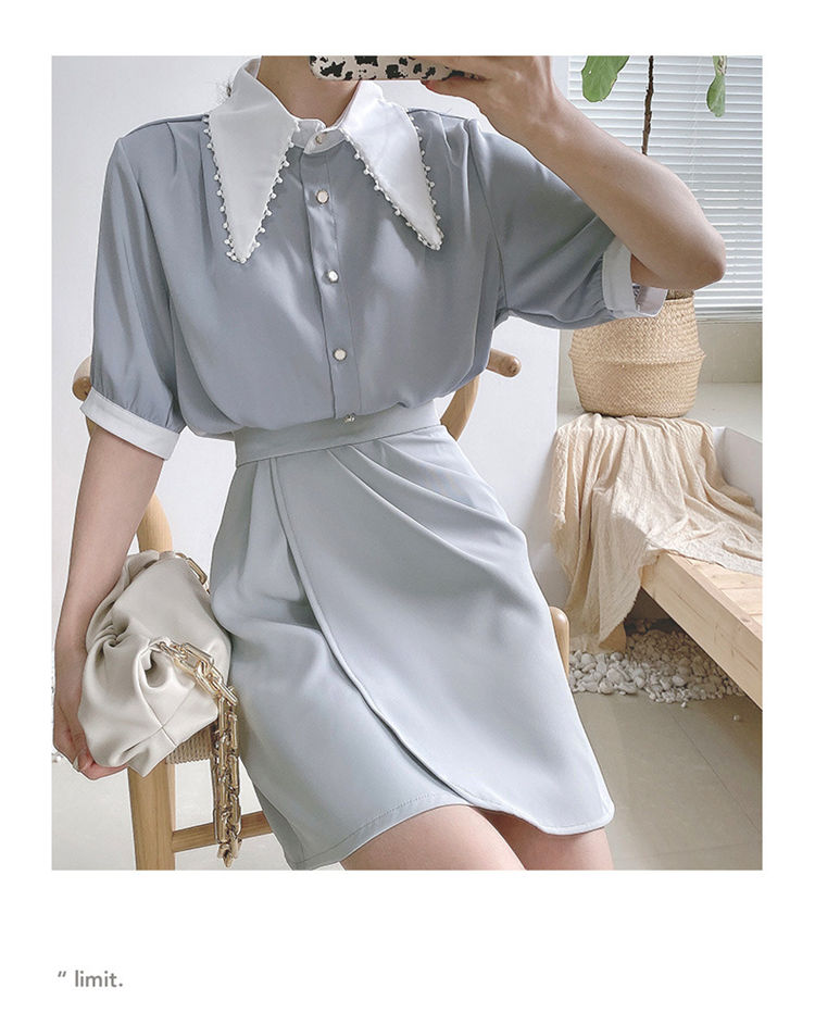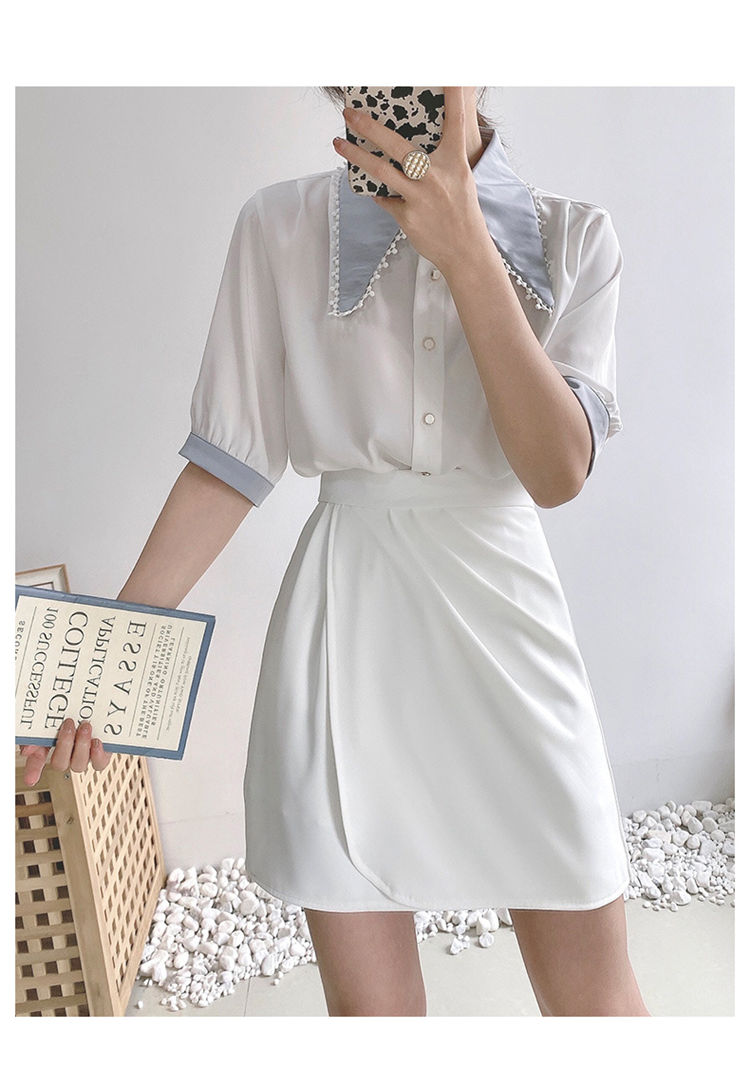 シアースリーブ ドッキングシャツ ボウタイシャツブラウス