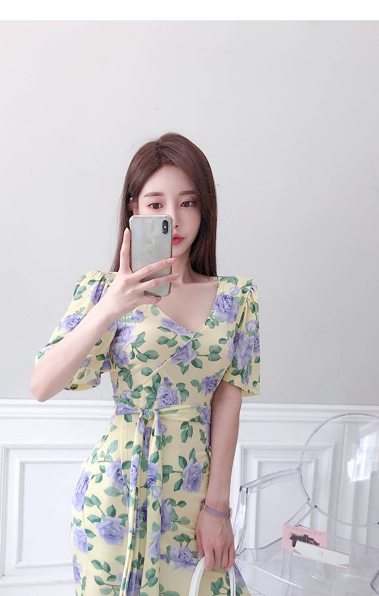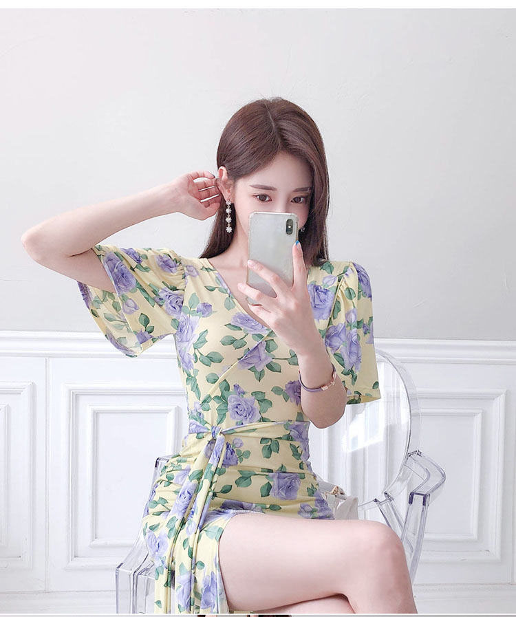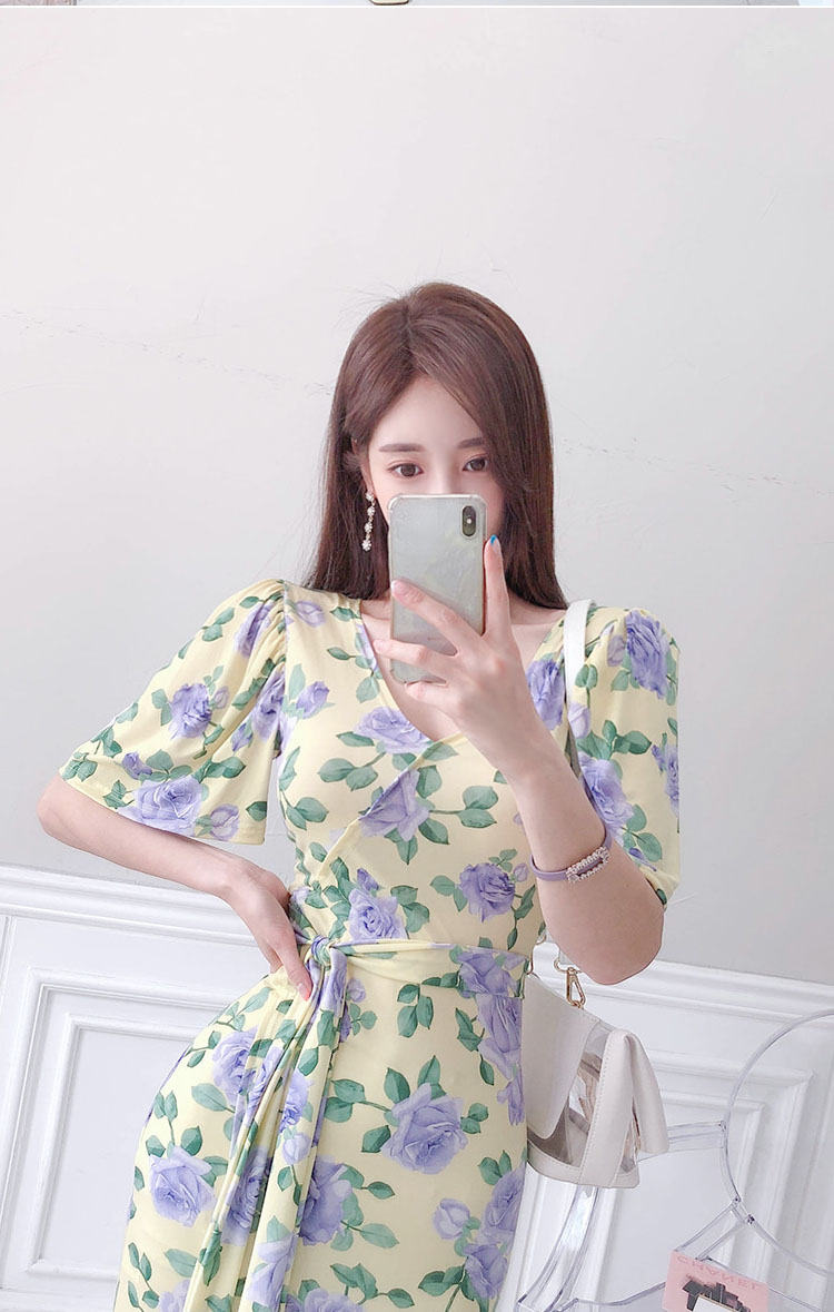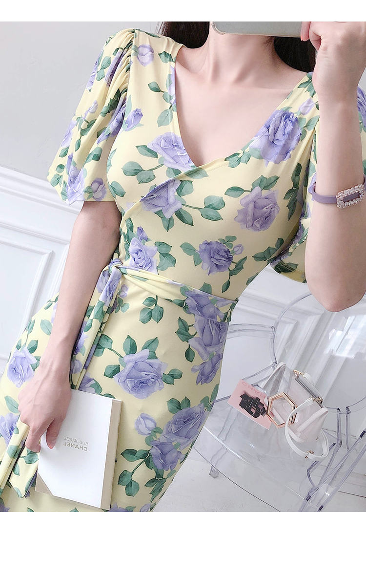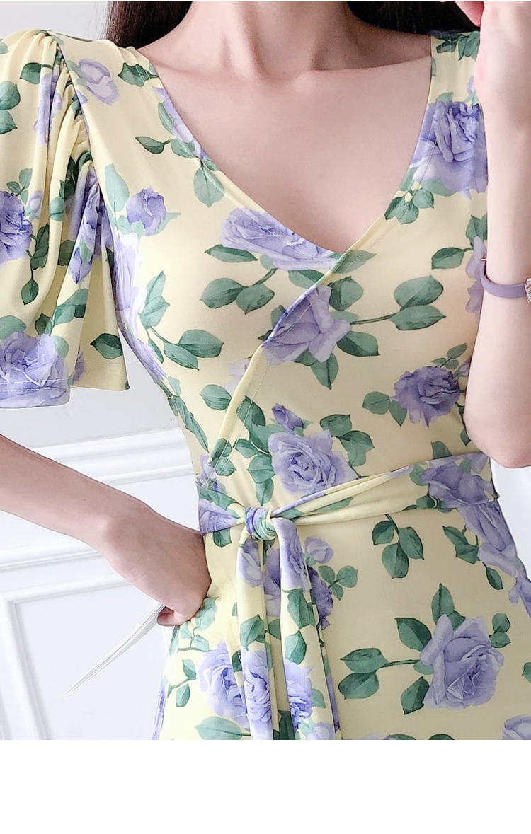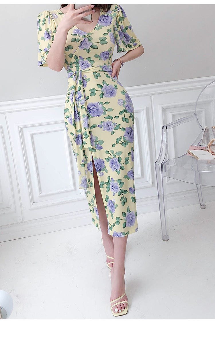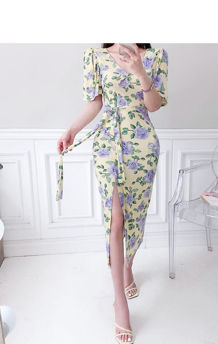 ワンピース 花柄 スリット リボンタイ