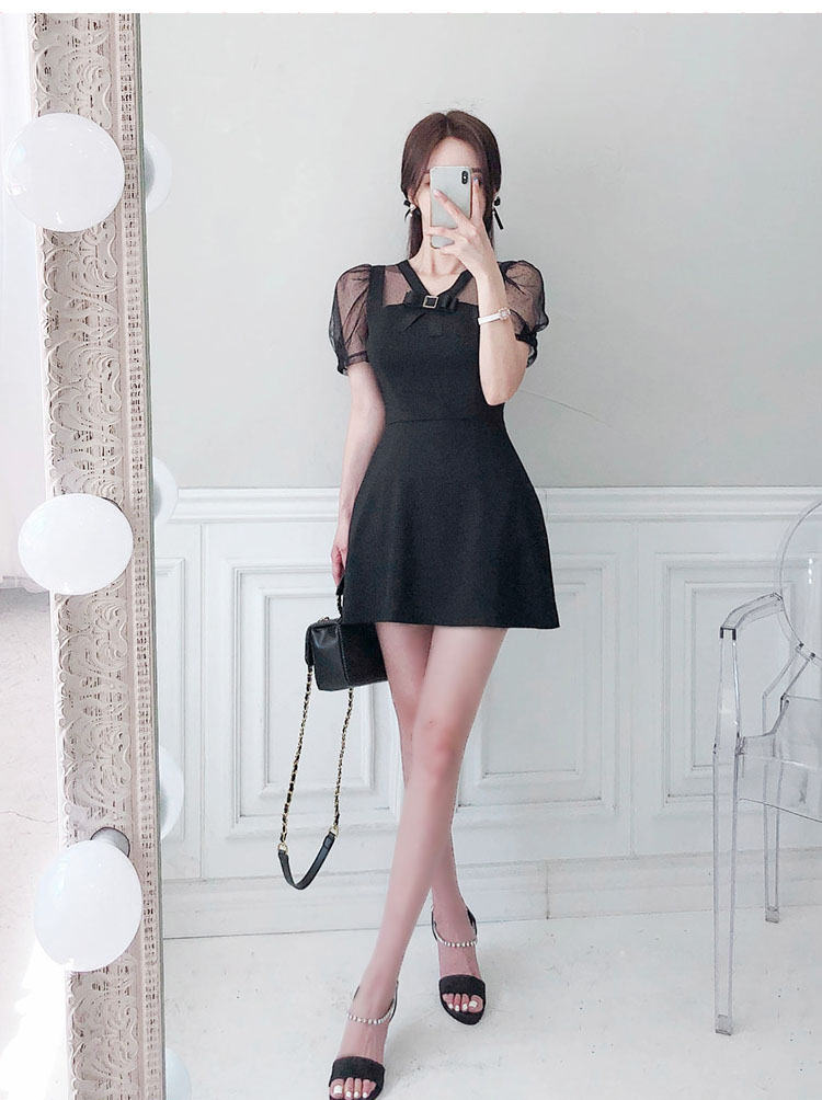 シアースリーブ ドッキングシャツ ボウタイシャツブラウス