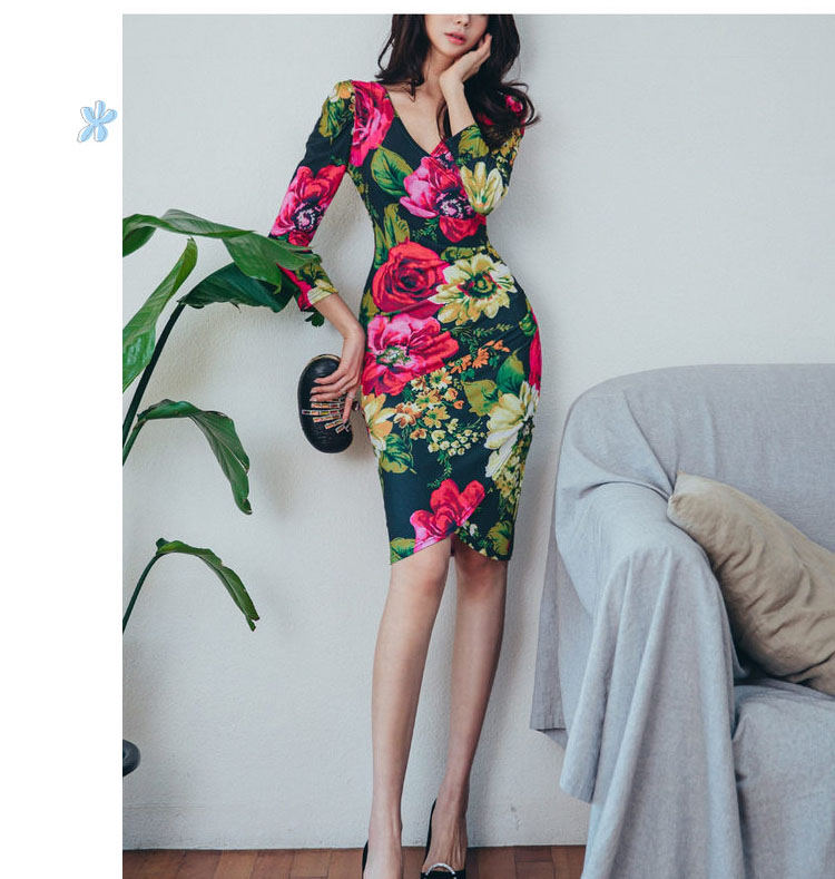 ワンピース 春 花柄 vネック 長袖