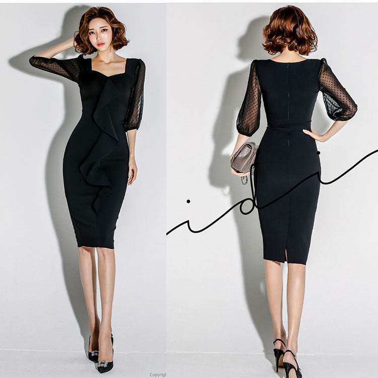 ワンピース 春 秋 長袖 大人 無地 タイト ショート丈 パーティドレス クラブ レディース お出かけ セクシー 結婚式 フェミニン お洒落 女の子 ブラック ワインレッド きれいめ 優雅 xingg