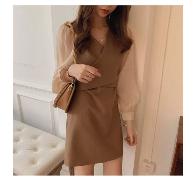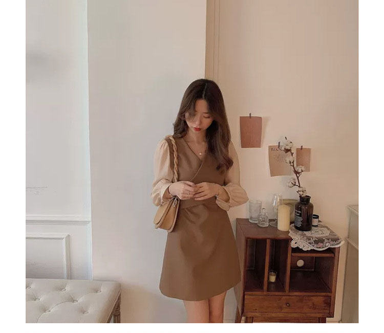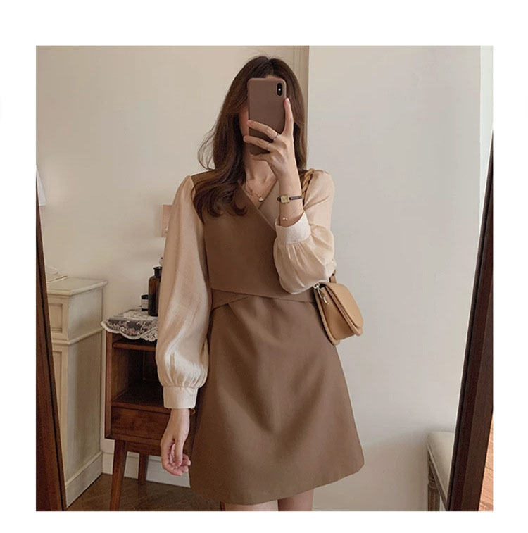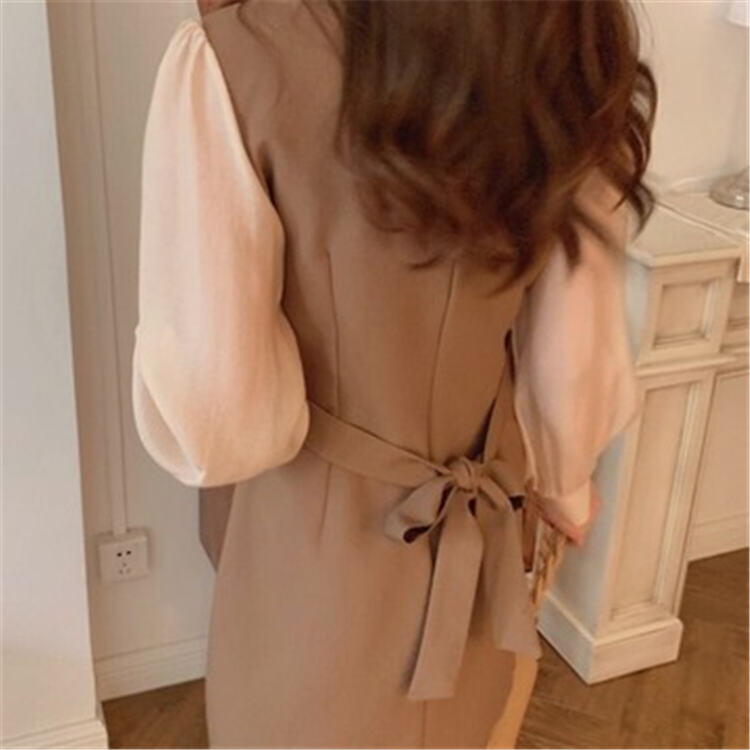 ワンピース 春秋 長袖 ベージュ ブラ