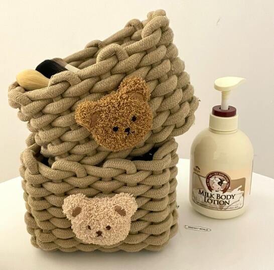 くまベアマルチコットンバスケット4タイプ綿かご洗濯可おしゃれかわいい韓国雑貨インテリア北欧収納洗濯おもちゃかご深い子どもキッズ赤ちゃんおむつ深い整理整頓小物入れ化粧品