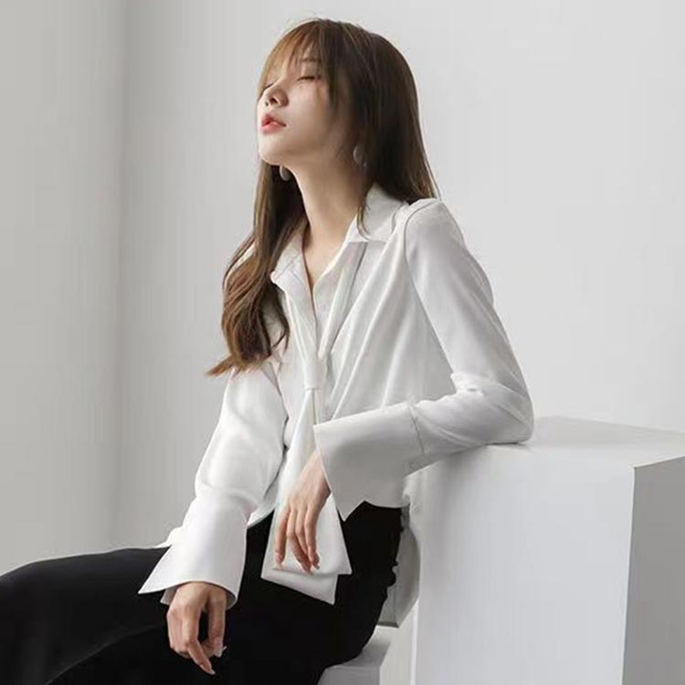 シアースリーブ ドッキングシャツ ボウタイシャツブラウス