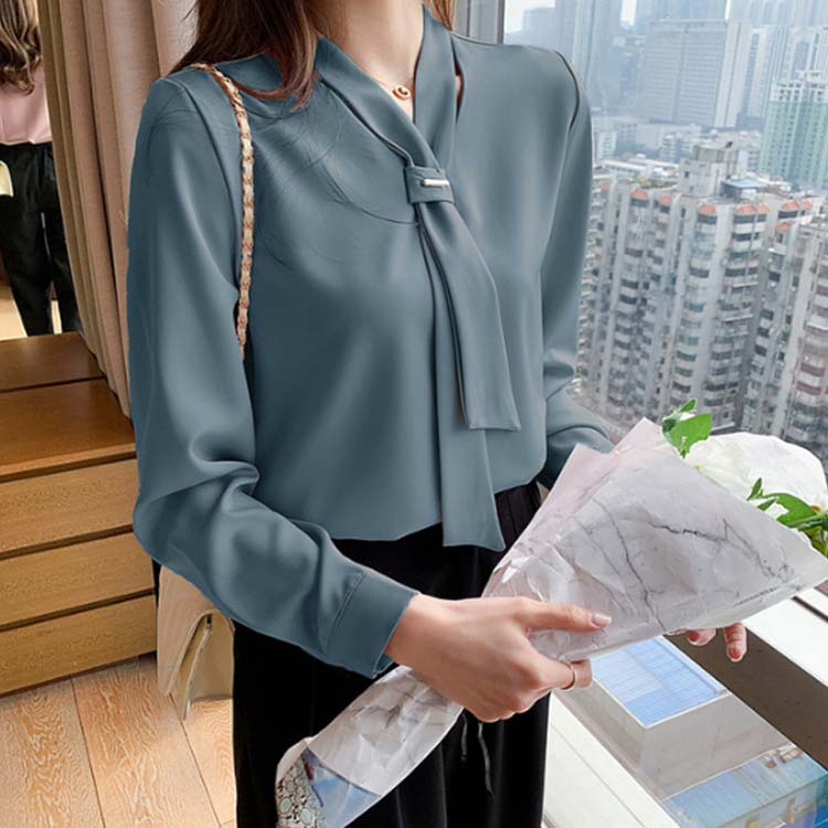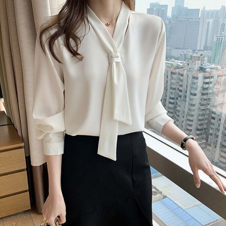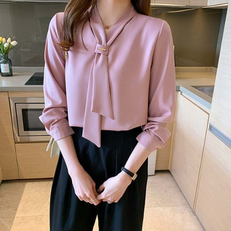 シアースリーブ ドッキングシャツ ボウタイシャツブラウス