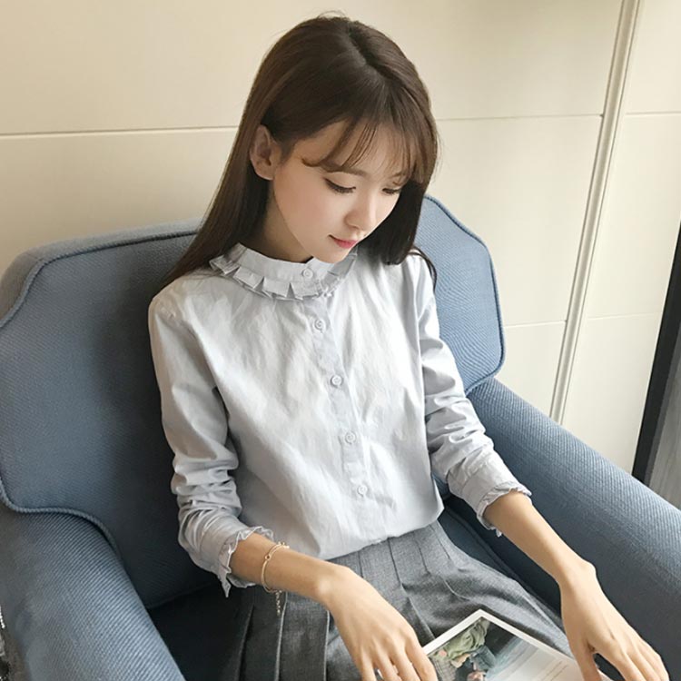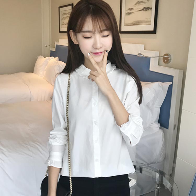 白シャツ フリル襟 春シャツ レディー