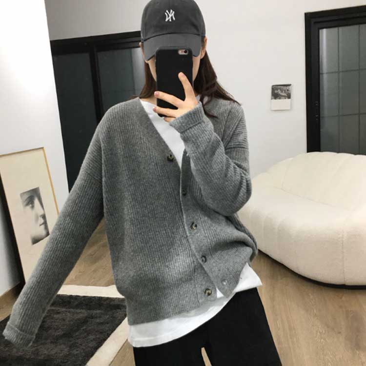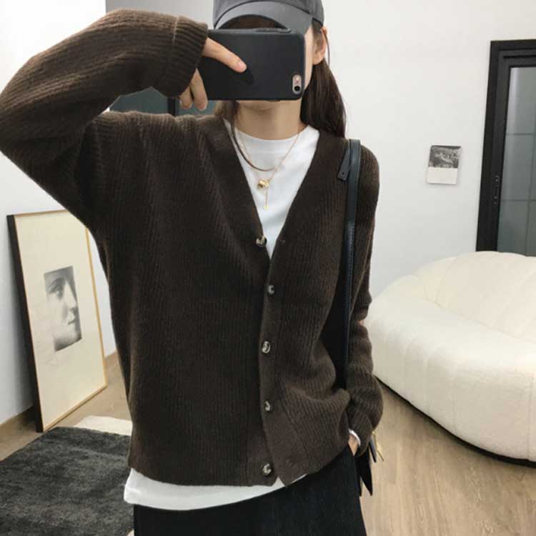 カーディガン 無地 春秋 ニットカーデ
