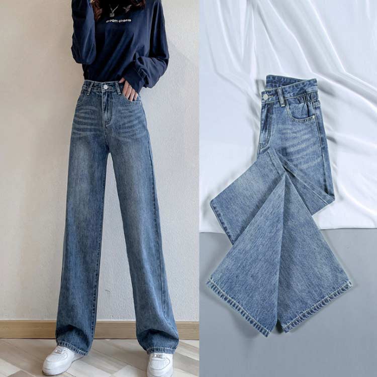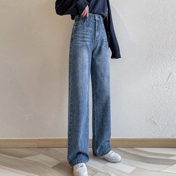 ワイドパンツ ストレート 体型カバー デニムパンツ ボトムス ゆったり カジュアル お洒落 通勤 普段着 お出掛け シンプル 秋服 ロングパンツ ズボ