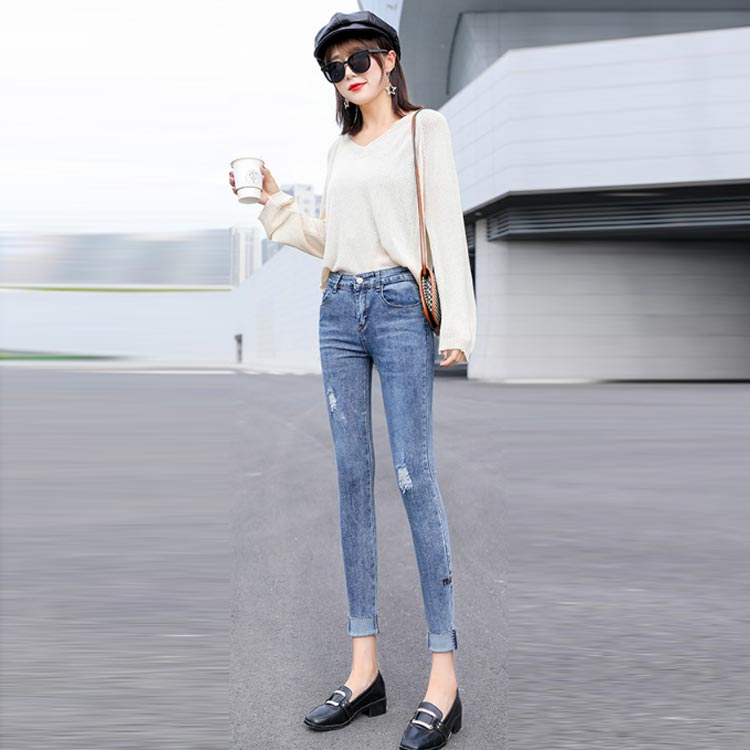 デニムパンツ ビジュー付き