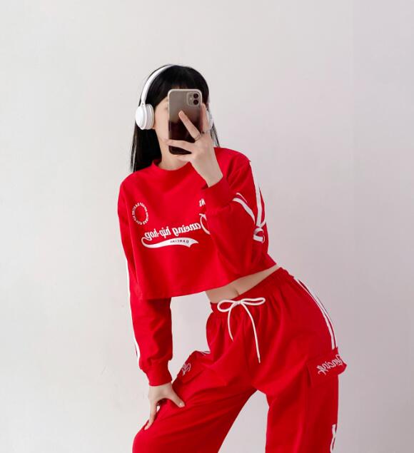 ライン長袖ショート丈短い短めへそ出しセ