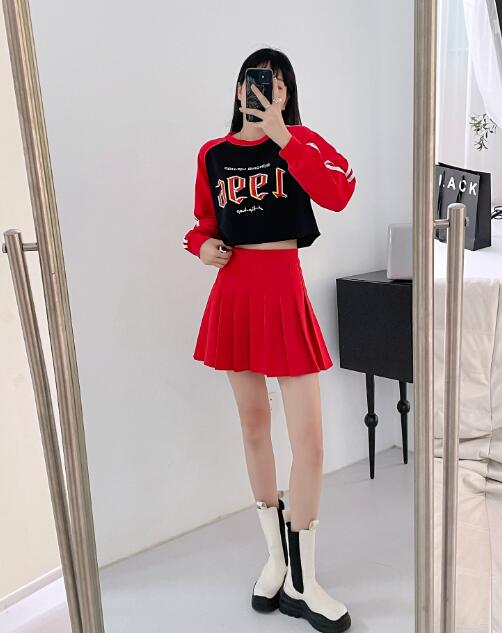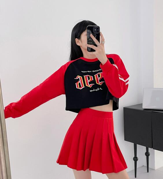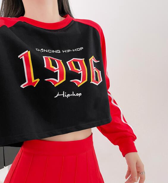 ライン長袖ショート丈短い短めへそ出しセ