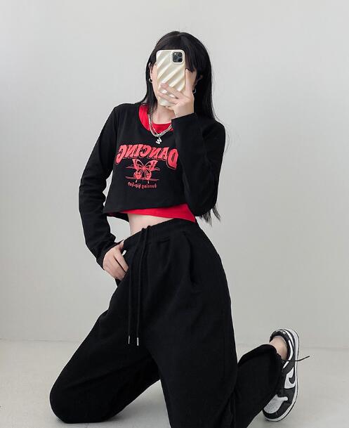 ちょうちょ重ね着風長袖ショート丈短い短