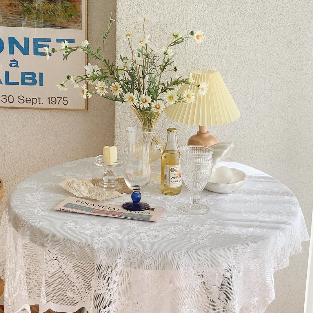 テーブルクロス花柄レース刺繍白ホワイトフレアフリルフラワー北欧韓国おしゃれ雑貨アンティーク布かわいいピクニックシートカフェマット四角長方形75cm×140cm100cm×145cmレトロ生地背景可愛い