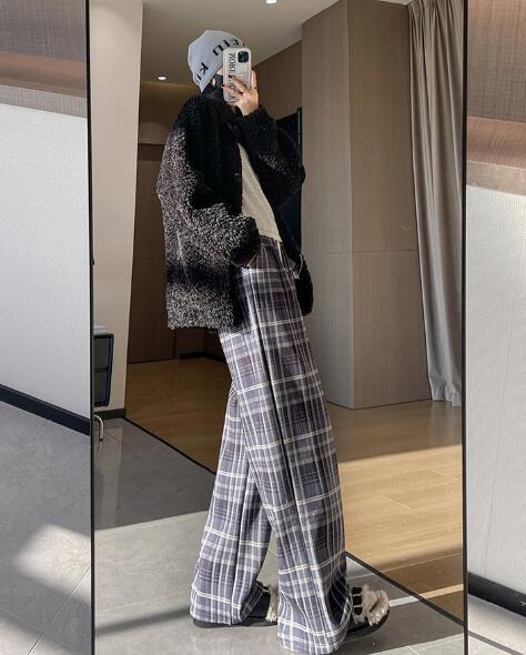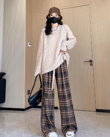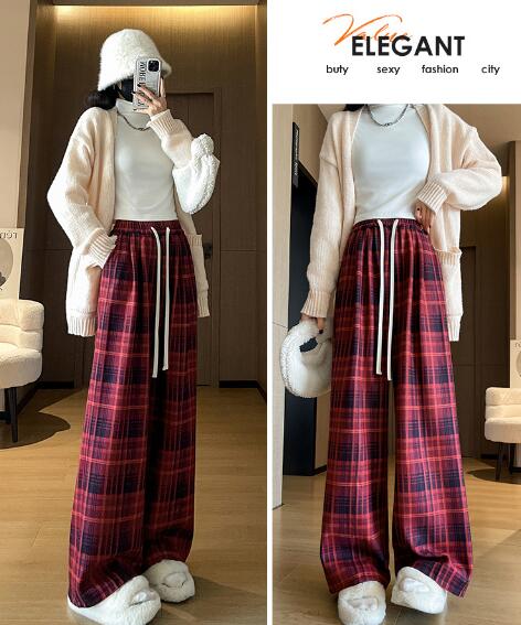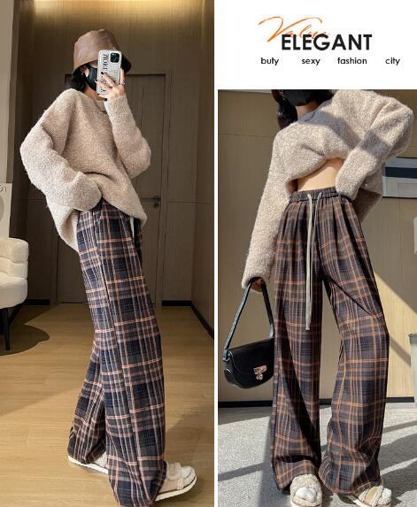 チェックパンツズボンボトムスゴムハイウ