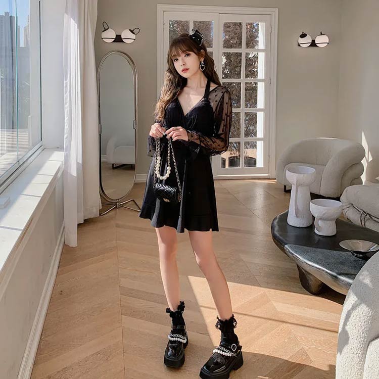 シアースリーブ ドッキングシャツ ボウタイシャツブラウス